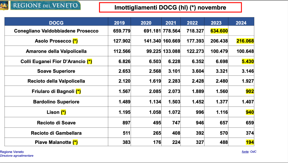 Nel Sistema Vitivinicolo Veneto c’è una DOCG che si distingue per la crescita continua che manifesta nella produzione. Una denominazione che, anche grazie al grande lavoro di squadra del Consorzio e dei produttori, è passata dal 2019 al 2024 da 127.902 ettolitri a 216.068 ettolitri imbottigliati. Un exploit che non ha portato via quasi nulla all’altra DOCG Conegliano Valdobbiadene, in considerazione del fatto che quest’ultima si attesta su un valore sostanzialmente stabile di circa 650.000 ettolitri di vino imbottigliati.