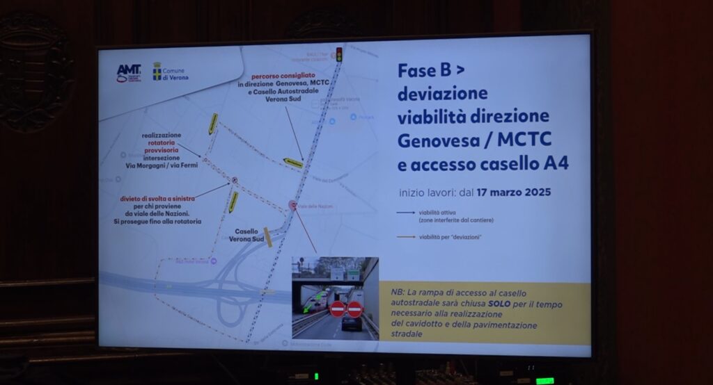 La fase B, prevista a partire dal 17 marzo, avrà una durata di 35 giorni circa. In quei giorni chi dovrà prendere l’autostrada A4 al casello di Verona sud dovrà immettersi nella rotatoria provvisoria posizionata all’intersezione fra via Morgagni e via Fermi. Il sottopasso, infatti, sarà completamente interdetto al traffico. Chi, invece, andrà in direzione Sacra Famiglia/Genovesa dovrà necessariamente studiare un altro percorso. Alla sua riapertura l’imbocco per l’autostrada rimarrà tale, mentre la corsia con direzione Genovesa sarà più ampia e ospiterà, per la prima volta, il test della Filovia.