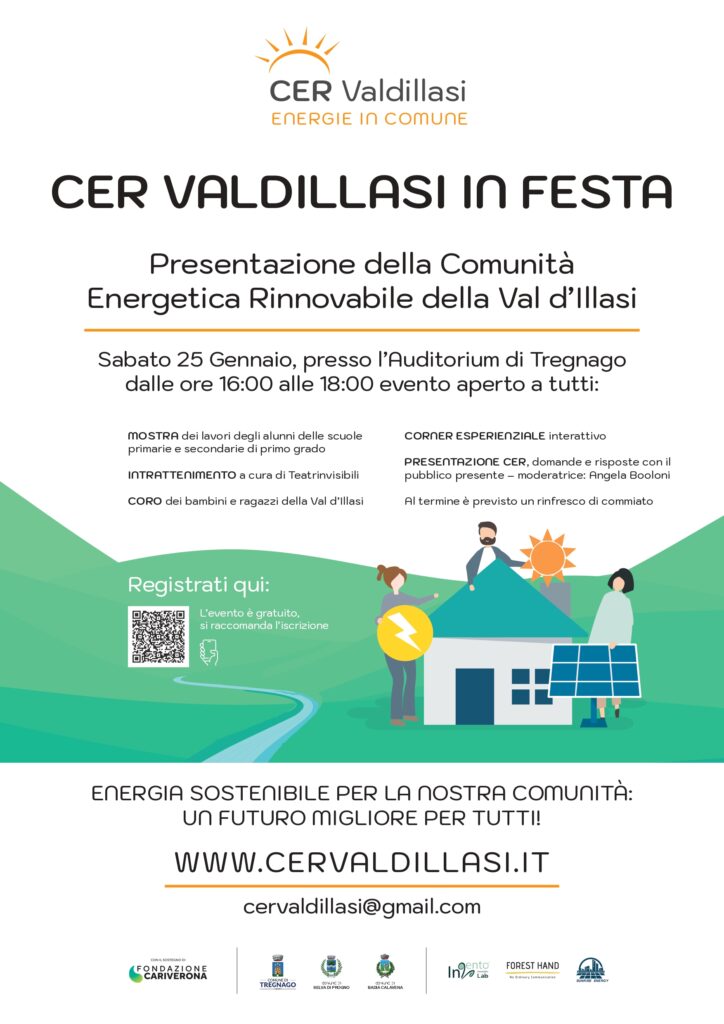 Una festa pubblica per dare il via alla Comunità energetica della Val d’Illasi, costituita nel giugno 2024, fondata dai Comuni della Vallata di Illasi (Tregnago, Selva di Progno e Badia Calavena) che ne garantiscono la gestione, con l’intento di essere protagonisti della transizione energetica e di portare vantaggi, oltre che ambientali e sociali, anche economici al territorio ed ai membri della CER. La CER Valdillasi è stata realizzata anche grazie al contributo di Fondazione Cariverona e alla collaborazione con i partner tecnici: InVento Innovation Lab, EY Studio Legale Tributario, Sunrise Energy e Forest Hand.