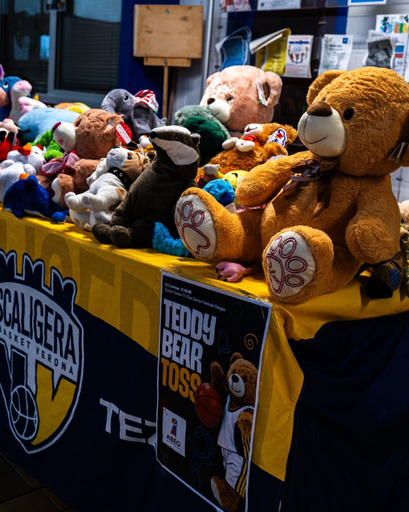 Primo quarto: Verona vince la palla a due con Zach Copeland che si lancia subito al ferro e guadagna due liberi nei primi secondi. 0/2 della guardia americana. Ancora Copeland che sbaglia da dietro l’arco. Il primo canestro della partita è di Ethan Esposito seguito poi dal Teddy Bear Toss per donare giochi ai bambini ricoverati in oncoematologia degli ospedali scaligeri.