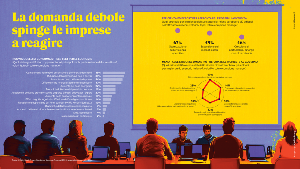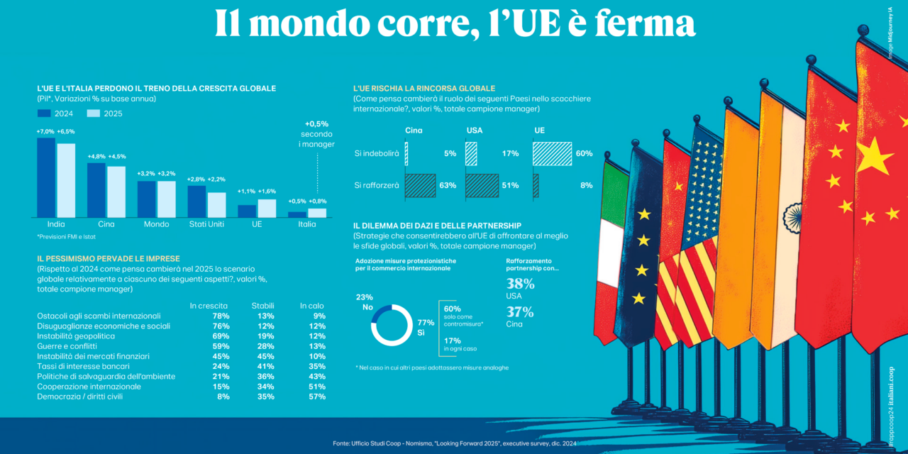Lo scenario del Report della Coop sull’inverno 2024-25 – realizzato attraverso un panel di poco meno di 700 manager italiani (compresi quelli de L’Adige) – registra un sistema imprenditoriale molto attento al quotidiano, che continuerà la sua propensione all’export e una nuova stagione di alleanze nel proprio settore per migliorare le capacità competitive.