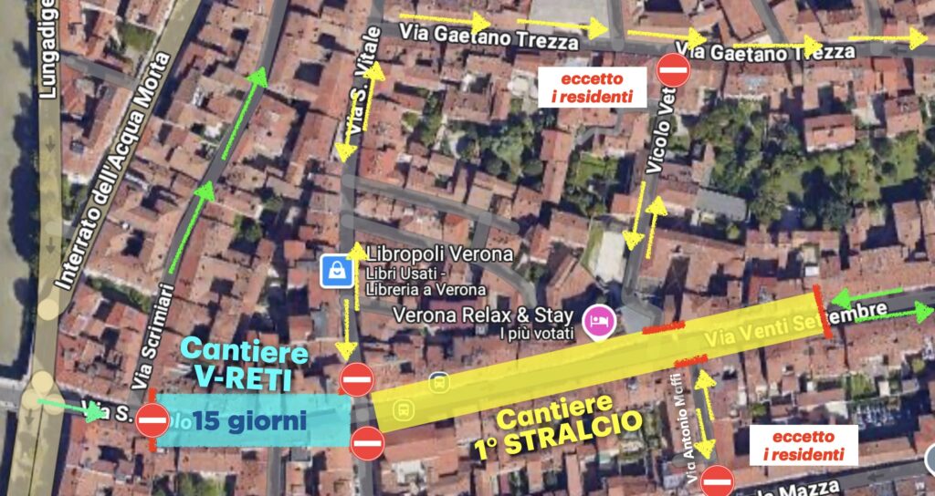 In tutte le aree del cantiere di via XX Settembre sarà sempre garantito l’accesso pedonale, mentre per i possessori di passi carrabili, attività commerciali e residenti in Veronetta che si trovano nel perimetro dei duecento metri di cantiere, rimangono attive le soluzioni di pass riservati presso i parcheggi Centro e Polo Zanotto. Per i tutti possessori di pass Veronetta sono riservati posti auto anche in piazzale Cimitero (dalle ore 17 alle ore 9) e nell’area di via Bassetti. E’ utilizzabile con i pass Veronetta anche il parcheggio di piazzale Maestri del Commercio.