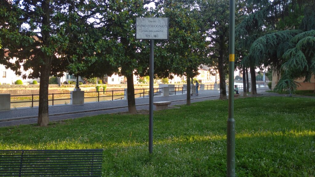 (di Claudio Beccalossi) Una rinfrescata di memoria, un doveroso tributo ad un rilevante cartellonista pubblicitario ed illustratore della prima metà del Novecento. È stato questo il senso dell’intitolazione dei giardini nei pressi della chiesa di San Giorgio in Braida, il 18 giugno 2011, ad un artista del settore come Plinio Codognato (Verona, 13 aprile 1878 – Milano, 28 settembre 1940), con lo scoprimento d’una targa marmorea su un supporto metallico a lui dedicata.