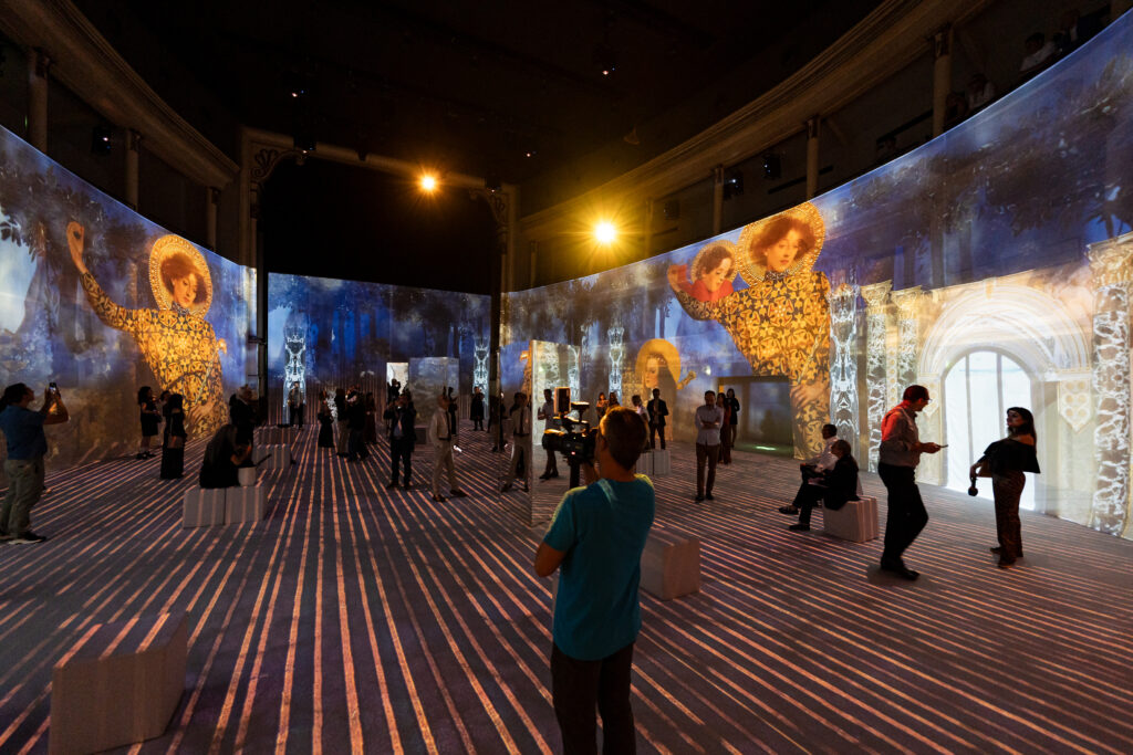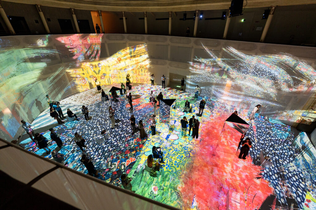 Lo spettatore è avvolto dalla narrazione in un continuo crescendo di immagini, suoni e movimenti in grado di catapultarlo in un mondo onirico. L’immersive experience ripercorre la vita di Klimt e il contesto della Secessione Viennese. Con un’esplosione dorata la scena si ricompone in una notte stellata veronese e il racconto continua con un omaggio a Romeo e Giulietta, rappresentando i punti più importanti della tragedia shakespeariana: il sanguinoso scontro tra Montecchi e Capuleti e l’amore tra i protagonisti che rivive sul palco attraverso la danza di due ballerini. Lo spettacolo si chiude su Klimt con una proiezione introspettiva dell’Albero della vita, in grado di suscitare sensazioni di pace e armonia con l’universo.