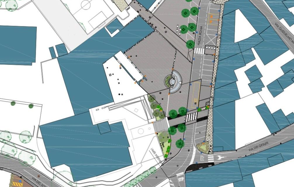 Anche sotto il profilo economico, il nuovo studio rappresenta un’evoluzione significativa: a fronte di un costo iniziale stimato in 1,3 milioni di euro per la sola piazza, la nuova proposta prevede un investimento complessivo di 1,1 milioni di euro, comprensivi sia della riqualificazione di Piazza Roma (860mila euro) sia della costruzione del nuovo parcheggio. Grazie al contributo regionale di 387mila euro ottenuto nell’ambito del programma FESR 2021–2027 – Rigenerazione urbana e culturale, la spesa effettiva a carico del Comune per l’intervento sulla piazza si riduce a 473mila euro.