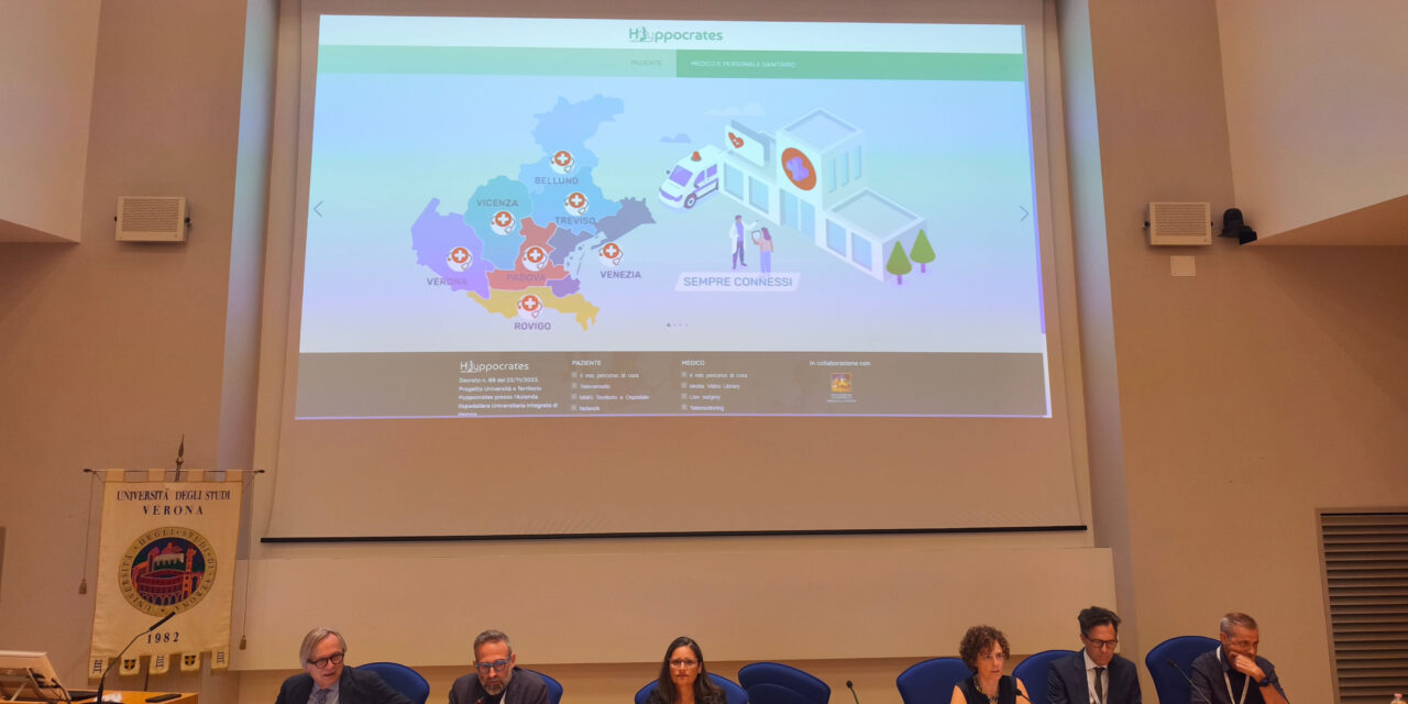 Il progetto pilota “Hyppocrates Verona” è stato presentato mercoledì al Policlinico di Borgo Roma, presenti: assessore regionale alla Sanità, Mauela Lanzarin, il direttore generale Aoui Callisto Marco Bravi, il delegato del rettore all’Innovazione tecnologica e digitalizzazione Franco Fummi, presidente dell’Ordine dei Medici di Verona, Alfredo Guglielmi e del coordinatore scientifico del progetto, professor Dario Bertossi della Chirurgia Maxillo-facciale.