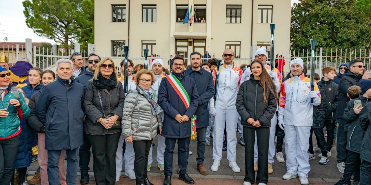 La staffetta olimpica ha preso il via alle ore 15.20 dalle scuole medie raggiungendo la scuola primaria, dove ad attendere i tedofori erano presenti 200 piccoli alunni con le bandierine tricolore, con tanto di dedica per gli azzurri che tra poco più di due settimane inizieranno a gareggiare.