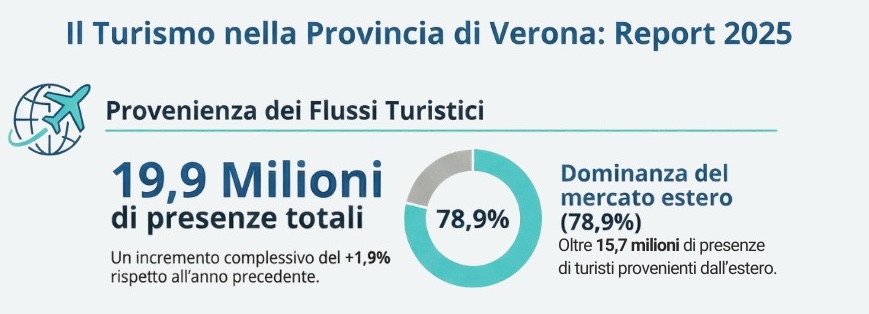 Nel complesso, il 2025 si chiude per Verona come un anno di consolidamento e di ulteriore rafforzamento del suo ruolo di destinazione turistica internazionale, capace di unire cultura, natura e ospitalità in un equilibrio che continua ad attrarre milioni di visitatori da tutto il mondo.