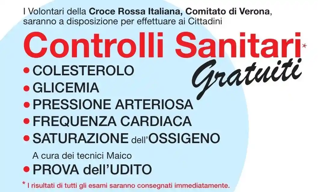 Dalle 8.30 alle 12.00 i volontari della Croce Rossa saranno a disposizione della cittadinanza per una serie di controlli gratuiti di prevenzione, tra cui misurazione della pressione arteriosa, saturazione dell’ossigeno, temperatura corporea, glicemia, colesterolo e frequenza cardiaca. Sarà inoltre possibile effettuare anche un controllo dell’udito.